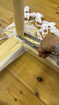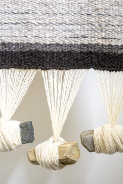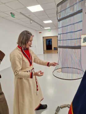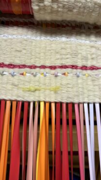 I made three textile artworks, ráno, earlier in the year of 2024 in Olmmáivággi/Manndalen 🇳🇴 in an ancient weaving technique on a warp-weighted standing loom with a mix of traditional and non-traditional materials. My weavings are interpretations of a person or a place in a similar way a vuolle/joik (musical expression by us Sámi) can reflect someone or something.